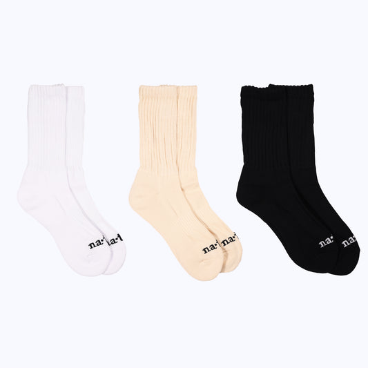3-pk strider socks (white, cream & black)
