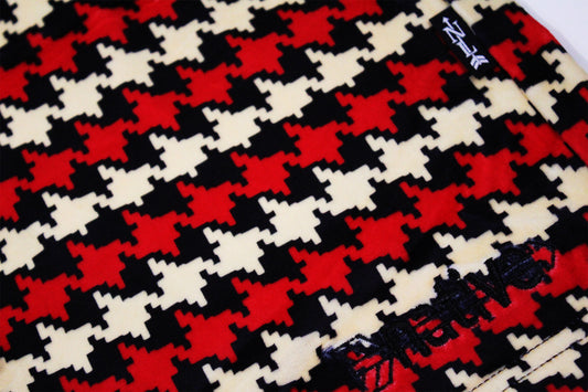 houndstooth velour duffel bag backpack in cream/crimson (black)