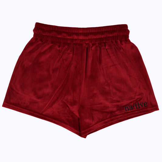 velour shorties in crimson