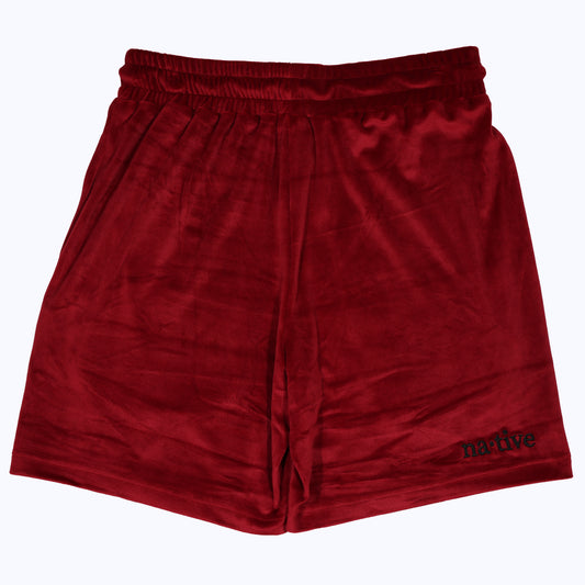 velour shorts in crimson