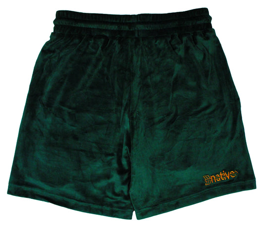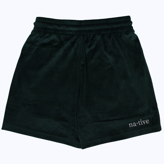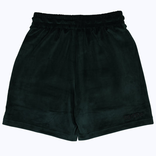 velour shorts in forest green