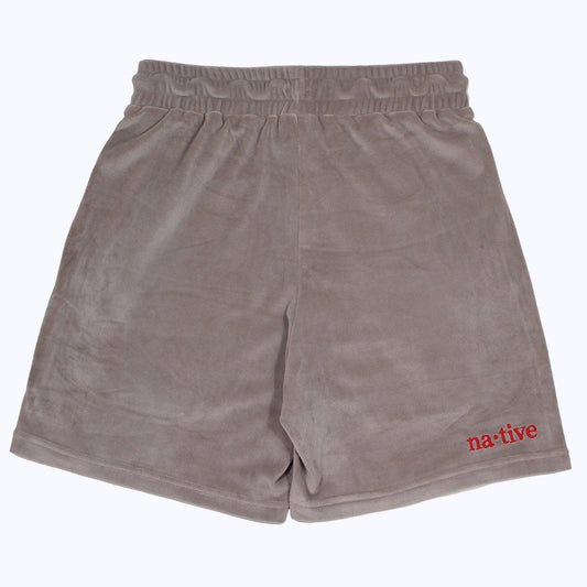 sold outvelour shorts in gray/red