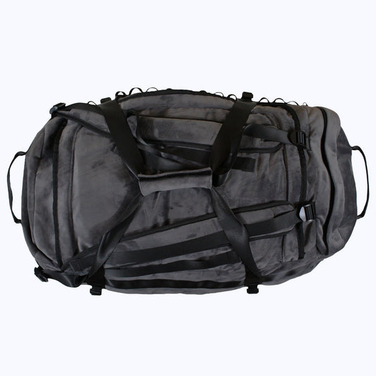 velour duffel bag backpack in charcoal